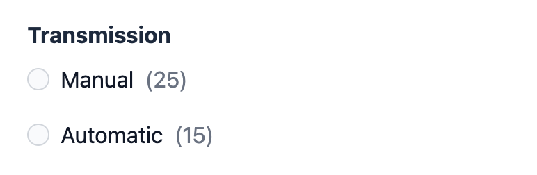 The Radio Filter utilizes HTML radio inputs to filter the collection based on one of the available options.